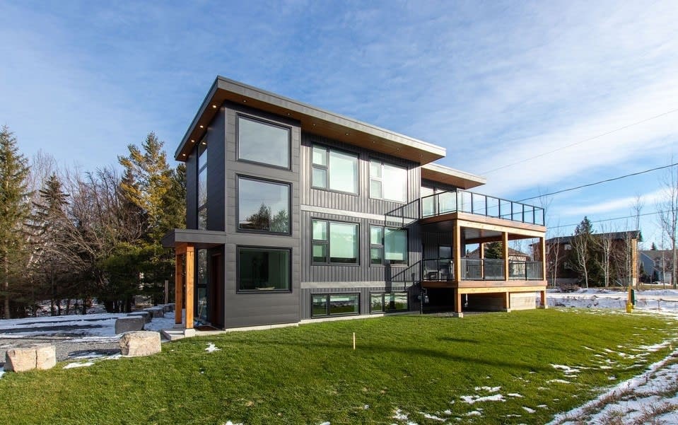 Modern 4-bed, 2-bath chalet with BELL FIBE high-speed Internet and new 49-jet 6-person HOT TUB, just 5 mins from Mt St Louis Ski Hill. The open-concept kitchen/dining/living space flows onto a huge deck overlooking the forest. Perfect for couples, adventurers, families and groups. Enjoy private trails, skiing, snowshoeing, biking/hiking, pool table, and more. Well-behaved dogs welcome. For local activities, search “The Chalet Moonstone” on YouTube.