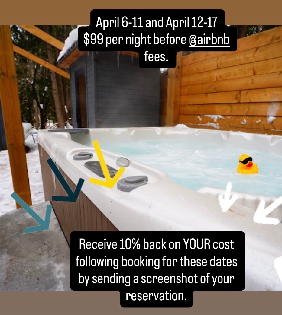 Unplug your tech and let the sights and sounds of the forest be your muse. Treat your body to the healing powers of a eucalyptus sauna. Cool down in the outdoor shower, stargaze, crack a book, play some Scrabble, colour or write. Sing with the wolves, skate through the forest, canoe, climb, swim, ski or snowmobile from your door to the OFSC trail. The quaint town of Dorset is in the center of one if Canada's most impressive landscapes. Escape. Exhale.