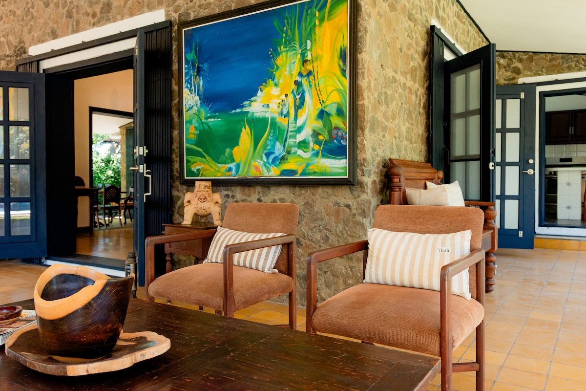 Eco-luxury 5-bedroom lakefront home on Ometepe Island, Nicaragua, overlooking Lake Nicaragua. Enjoy a gourmet kitchen, screened porch, private rocky beach, and high-speed cable internet with solar power for maximum comfort and minimal disruptions—perfect for remote work. Watch birds and monkeys, visit our organic farm with donkeys and goats, or enjoy yoga, kayaking, and horseback rides. Modern comfort meets nature’s beauty.