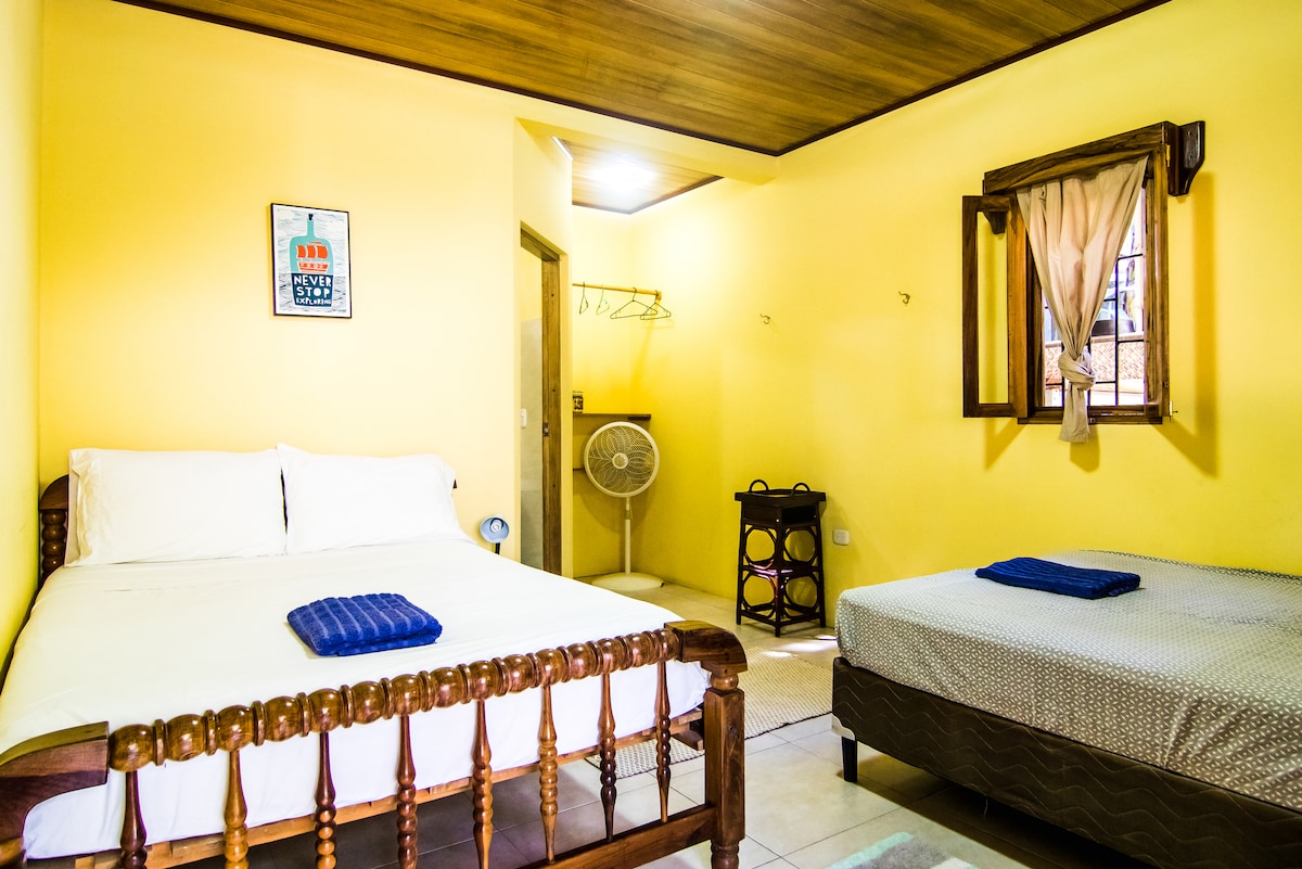 Only 5 minutes by car or bike from Playa Maderas and Playa Marsella, our villa offers 4 bedrooms with double beds and three bathrooms. There is plenty space for a large group or family to relax and socialize in any of the shared spaces as well as the large patio. There are Mini Markets nearby for your daily groceries. We can help with transport, rentals, and local tips. Whether you're relaxing, surfing or working remotely, our finca is a warm, welcoming place to stay and relax.