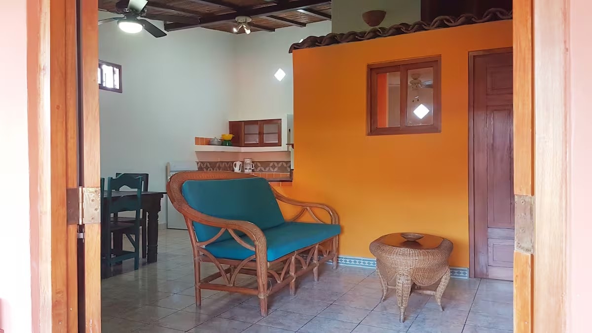 Casa anexa, espacio amplio con cocina equipada, dos habitaciones 6 personas en cada habitación con ventilador y baño privado, TV y hamacas, la playa está cruzando la calle, a poca distancia de otros sitios turísticos, ofrecemos servicio de renta de scooter, servicio de taxi, ayudamos a organizar tours. Cerca supermercado y restaurantes, este espacio tiene mucha privacidad, entrada independiente, es muy tranquilo y ventilado,(No se permite fiestas por las noches) mascotas bienvenidas.