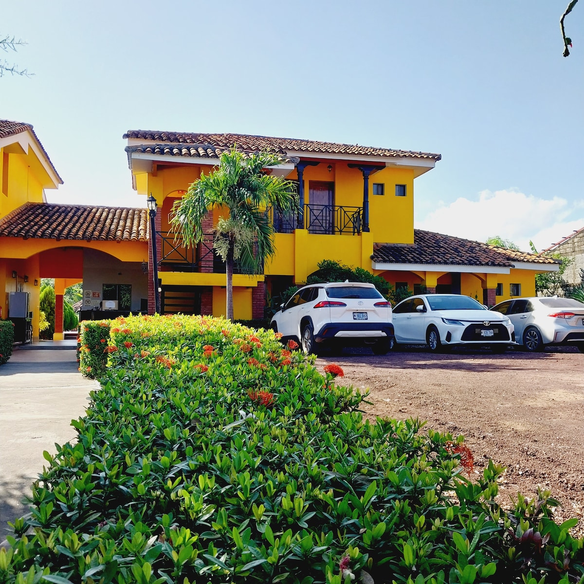 Quédate en un lugar elegante cerca de todo lo que quieras visitar. Con desayuno, amplio Estacionamiento, Jardín, piscina a solo 5 cuadras de la famosa calle La Calzada y Lago de Nicaragua, a 3 cuadras al sur de supermercado la colonia, a 3 cuadras al norte de iglesia la Merced a 20 minutos de la reserva Volcán Mombacho Granada.
