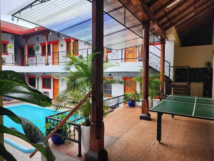 Te encantará este adorable lugar para quedarte. Ambiente tranquilo y familiar con delicioso desayuno incluido. Amplia piscina y jardin. amplio estacionamiento privado habitación con aireacondicionado. Ducha con agua caliente. a pocas cuadras del parque central. con recepción 24 horas.