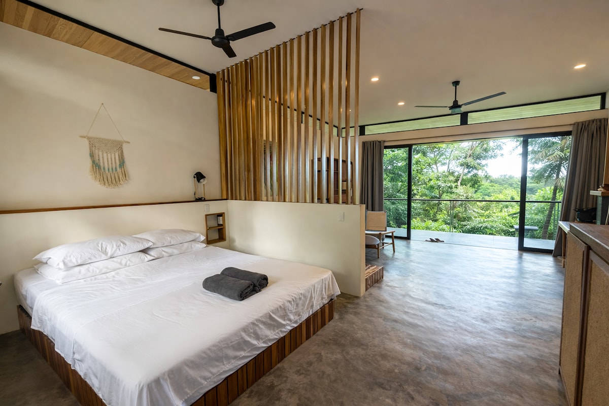 Casa Culebra: Rustic charm meets modern comfort in this single-level Airbnb nestled within Balcones de Majagual. Enjoy breathtaking ocean and jungle views from this open-air, private sanctuary. With 2 King bedrooms, solar hot water en-suites, and a fully equipped kitchen, it's perfect for a getaway. Cool off in the shared, newly renovated pool just steps away. Located 20 minutes from town and minutes from the beach. Accessible via 4x4 vehicles. High-speed 200mbps fibre optic internet available!