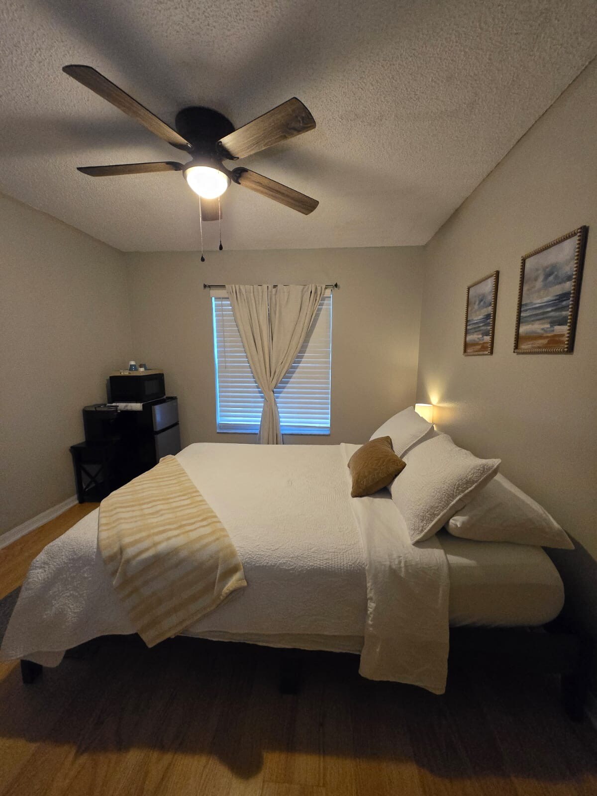 ¡Te damos la bienvenida a nuestra hermosa y romántica suite PRIVADO en Orlando , con una cama size Queen, un sofá cama, espacio de trabajo ,baño moderno, cocina totalmente equipada con todo lo necesario para su estancia! ¡Un espacio ideal para relajarte en tu escapada en pareja! *El estudio está conectado a la casa principal, pero tiene su propia entrada privada solo para su uso. No se comparte con nadie más. ¡En su entrada privada encontrarás un espacio para relajarte y disfrutar!