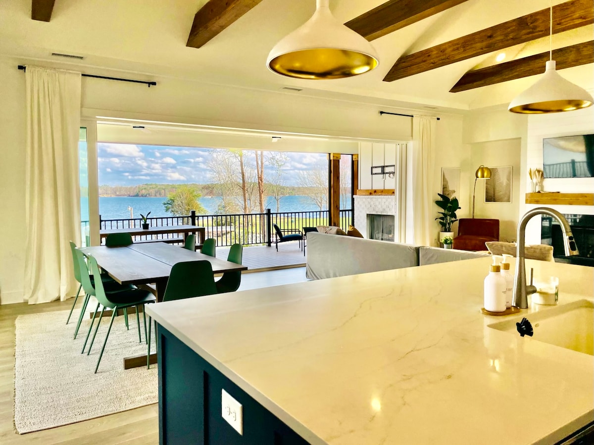 Water surrounds you on this picturesque peninsula. Enjoy an expansive deck overlooking your private boat dock 2 Bedrooms 1 Bathroom Bedroom 1 (Queen Bed) Bedroom 2 (Queen over Queen bunkbed) Shared Spaces 1 Queen double tall self-inflating air mattress Full Kitchen Granite Countertops Stainless Appliances Full Bathroom with step-in shower This is where you want to be on Lake Norman. Queen's Landing The Landing Restaurant 10 mins to Costco 30 mins to Downtown Charlotte