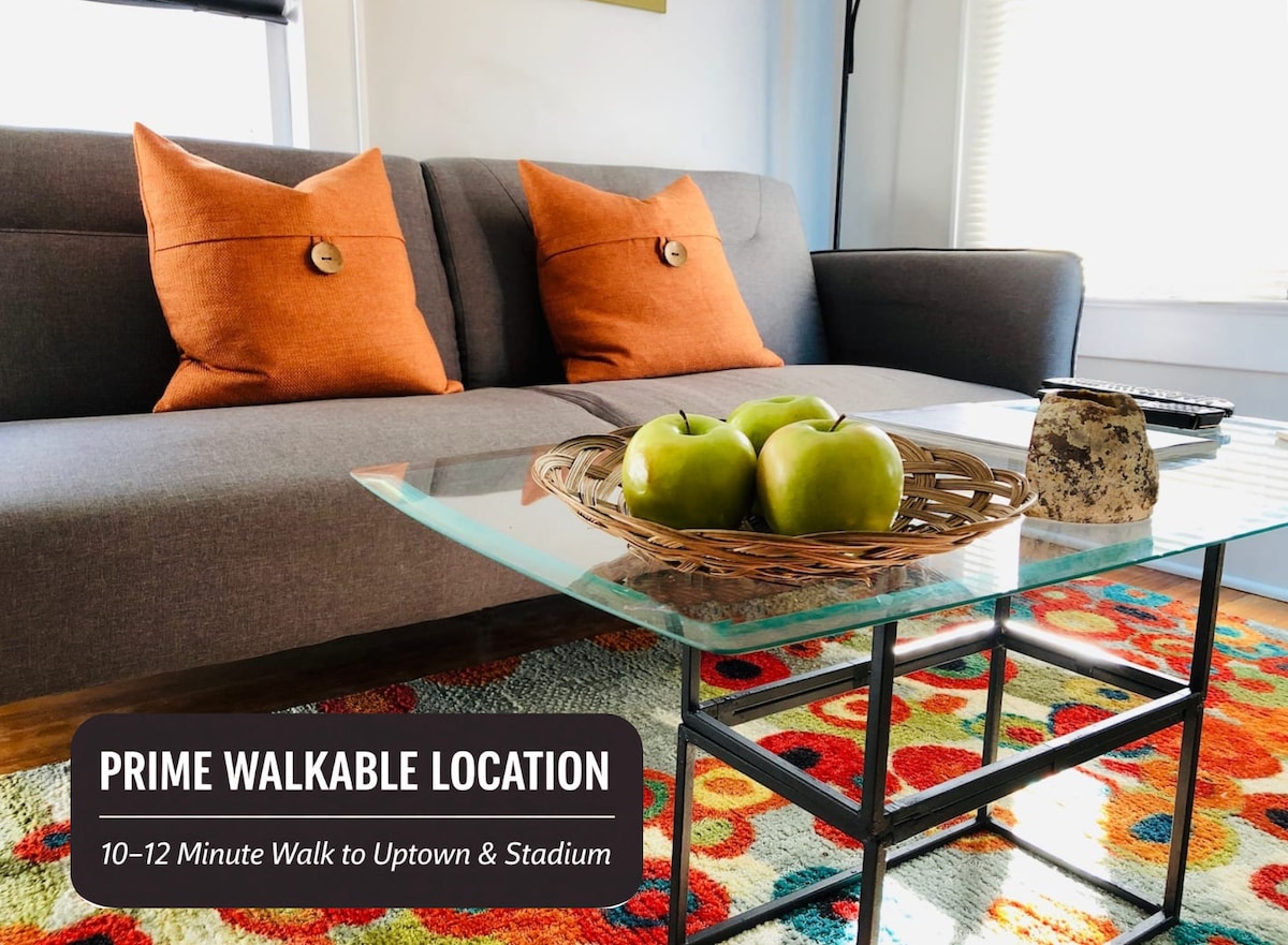 Prime walkable location: just a 10–12 minute walk to Uptown, BofA Stadium, concerts, and major events—no parking or ride-shares needed. Restaurants and local businesses are steps from your door. You’ll love the beautifully restored historic Wesley Heights homes and safe, tree-lined streets. Settle into this vibrant, charming, and clean private space designed for comfort and convenience. Everything you need is here, including a cozy in-house café with snacks, coffee, and tea to start your day!