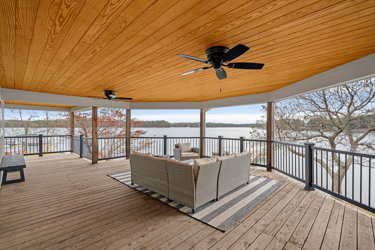 ☞ Lakefront escape with custom double-deck dock + sundeck, lounge seating, fans & lights ☞ Fast water + kayaks, paddleboards, floats & 6x15 floating pad ☞ 2 kitchens w/ coffee bars ☞ Premium beds (1K, 2Q, 2T) + luxury linens & Turkish cotton towels ★ “Best Airbnb we’ve rented—10 stars!” ☞ Smart TVs, Weber grill & firepit (wood included) ☞ Private 3/4 acre setting — perfect for families & groups. Book your lake escape.