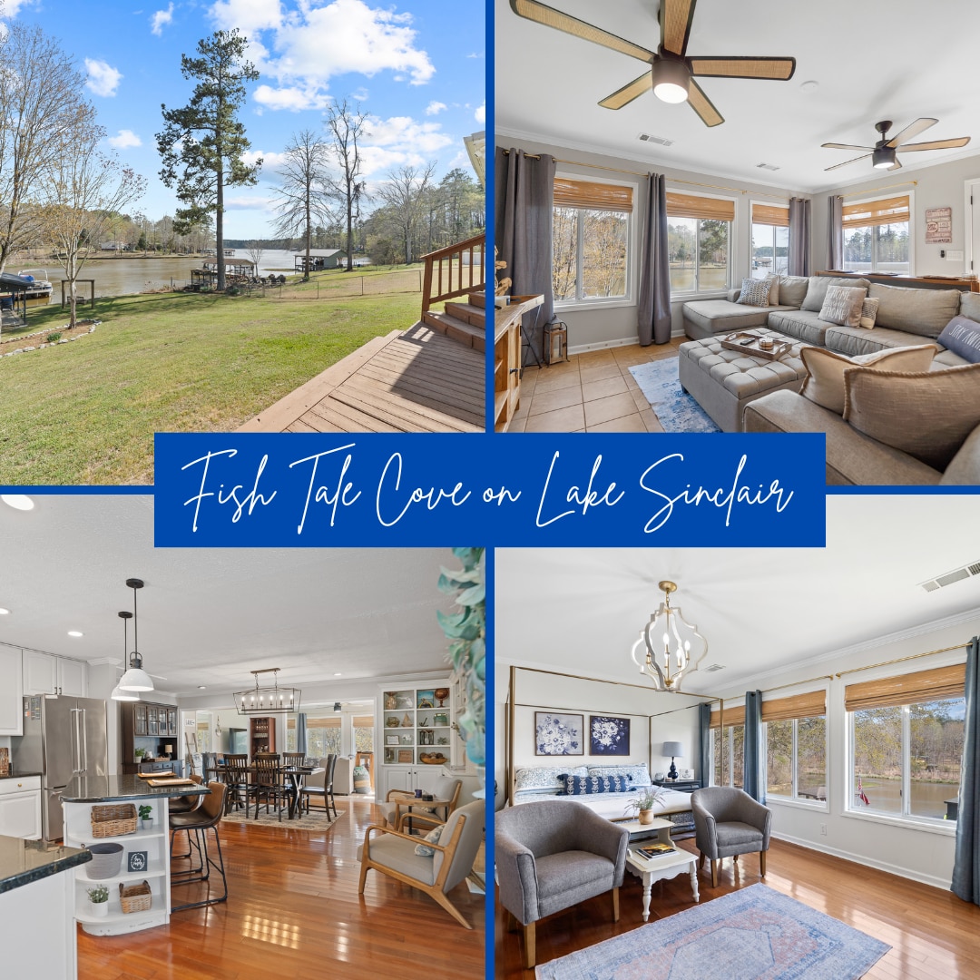 >>View our IG videos for more @anchorsaway_lakesinclair<< Renovated, spacious home w/ abundant outdoor space on deep waters of Lake Sinclair. 3 br, 2 ba + Queen pull out sofa comfortably sleeps 8. Enjoy the lake with our kayaks, paddle board, swim mat, fishing gear. Drop your boat in nearby Twin Bridges Marina & tie up at our dock. After water fun, soak in the hot tub, cook out on the grill, roast treats on the fire pit, play cornhole.