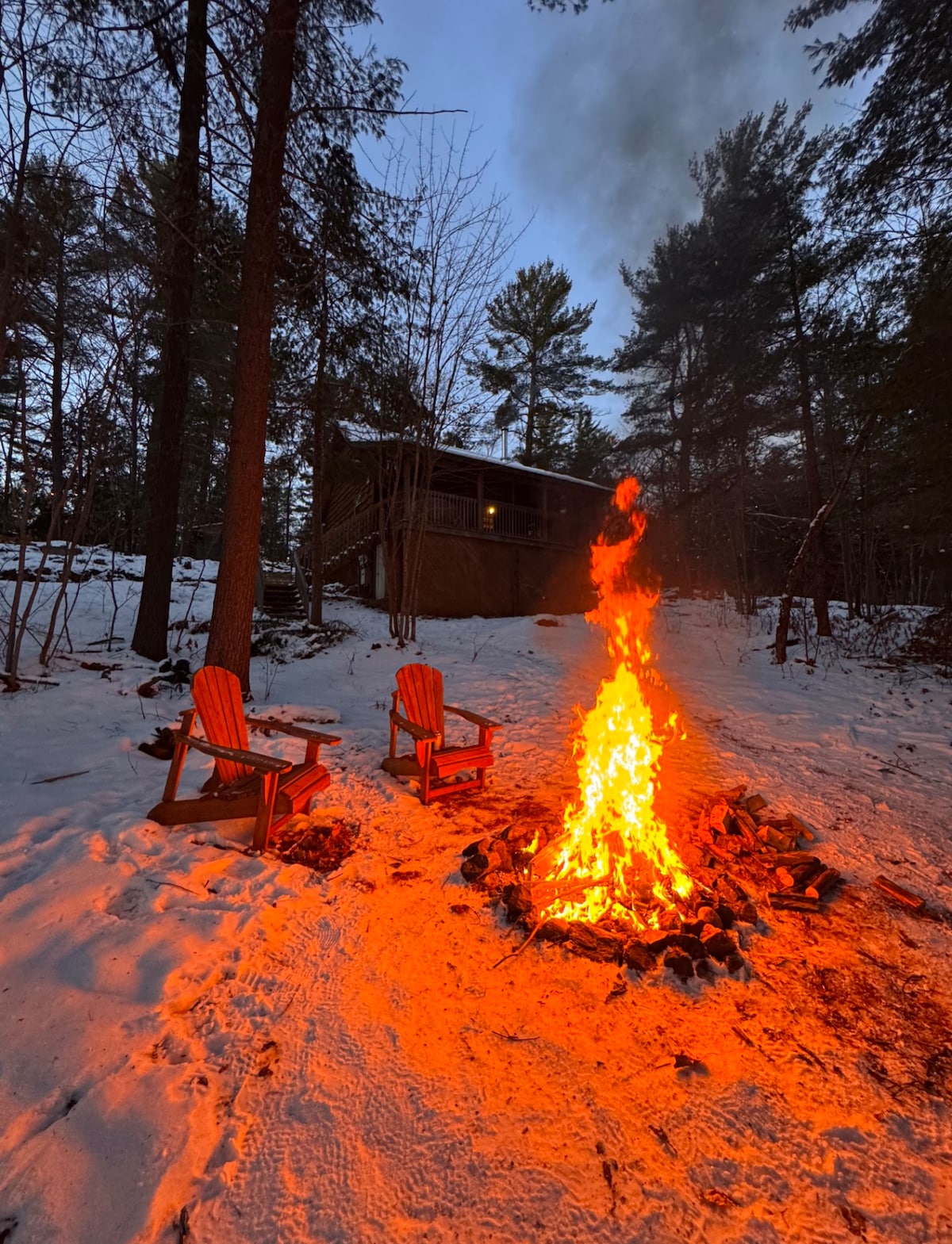 Enjoy a quite stay on a wooded lot in the heart of cottage country! The cabins are conveniently located within a short walking distance to the lovely town of Dorset, Kawagama Lake and Lake of Bays. The scenic lookout tower and hiking, snowmobiling and ATV trails are all at our doorstep! In town you can find restaurants on the water, Robinson's General Store and an LCBO. Come swim in the pristine waters, fawn over the fall colours or go for a rip on your snowmobile. It's all here!