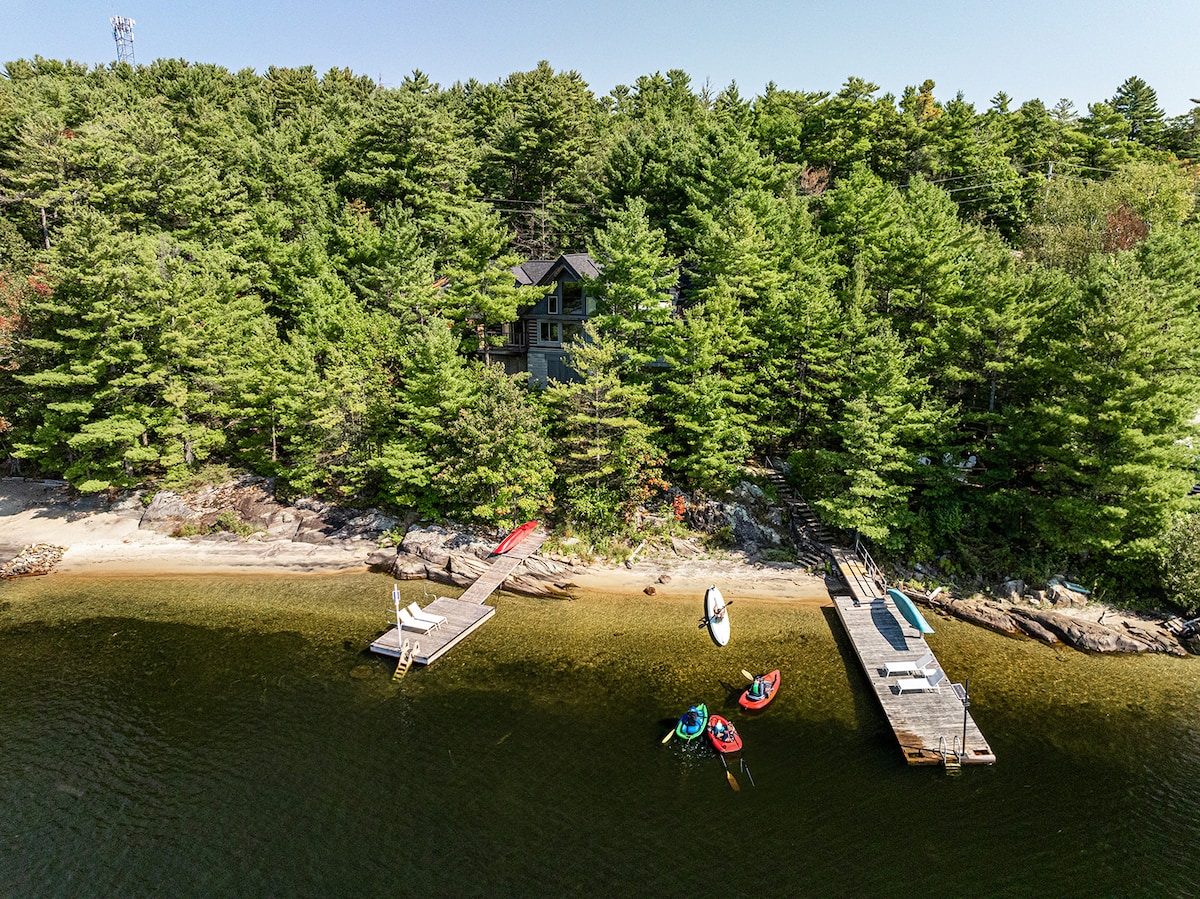 Welcome to D’oro Point overlooking Mary lake. We invite you to come relax, restore, and reconnect with nature on our 7.5 acres of wooded bliss. With only an approx 3 minute walk to our quaint neighbourhood beach, we are close enough to enjoy the lively lake life, yet maintain a private retreat feel. Stay on property and reap the health benefits of our private spa like amenities, which include the sauna, infrared hot yoga studio, and hot tub. Or, go out and explore all Muskoka has to offer.