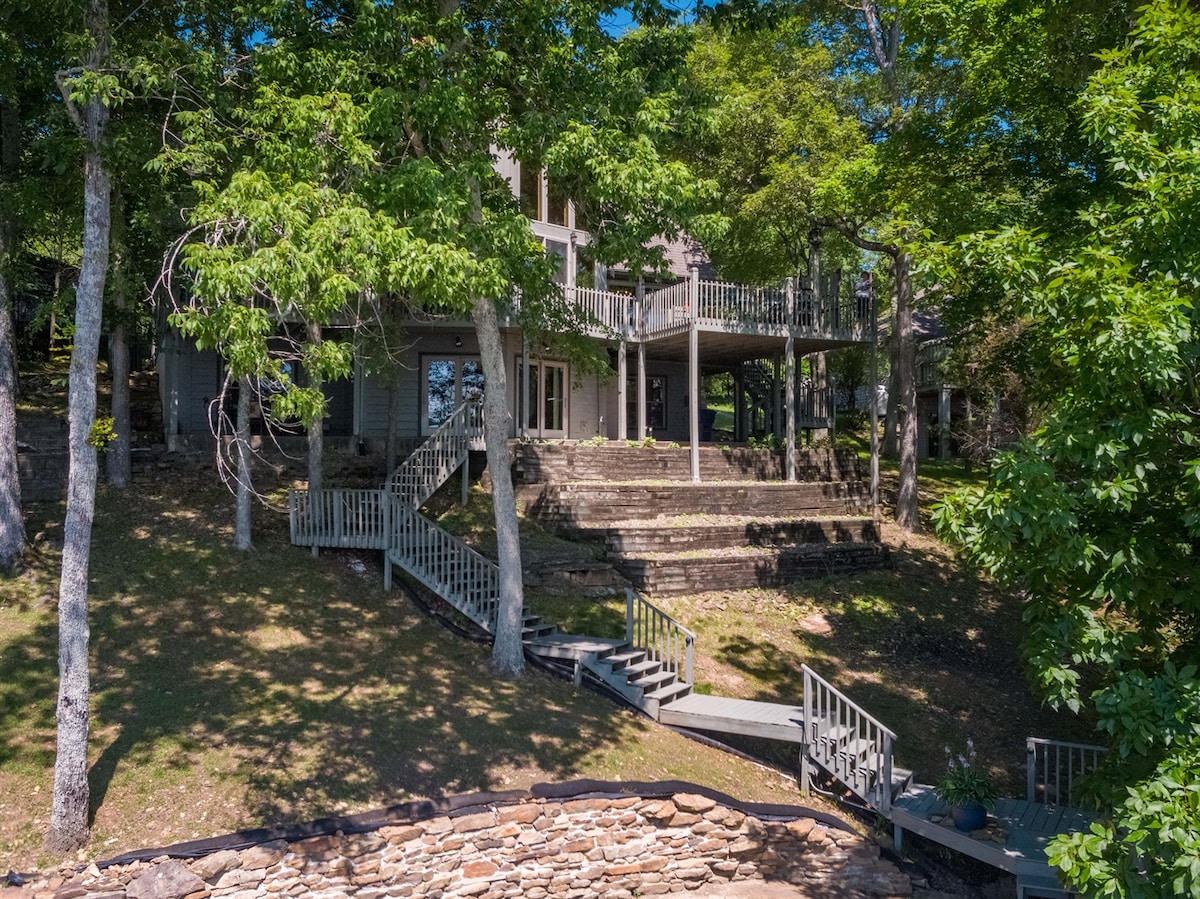 Escape to Sugar Creek Lodge — a private lakefront retreat nestled in the forest with no neighbors on either side. Enjoy peaceful views, two decks, a large private dock with boat & jet ski slip, kayaks, a fire pit, and new furnishings. Fast fiber internet makes it great for remote work. Three levels each have a bedroom and full bath. Fully stocked kitchen, 2 fridges, new appliances, and washer/dryer. Only 5 mins from I-24 and 10 mins to groceries — total seclusion, yet close to everything