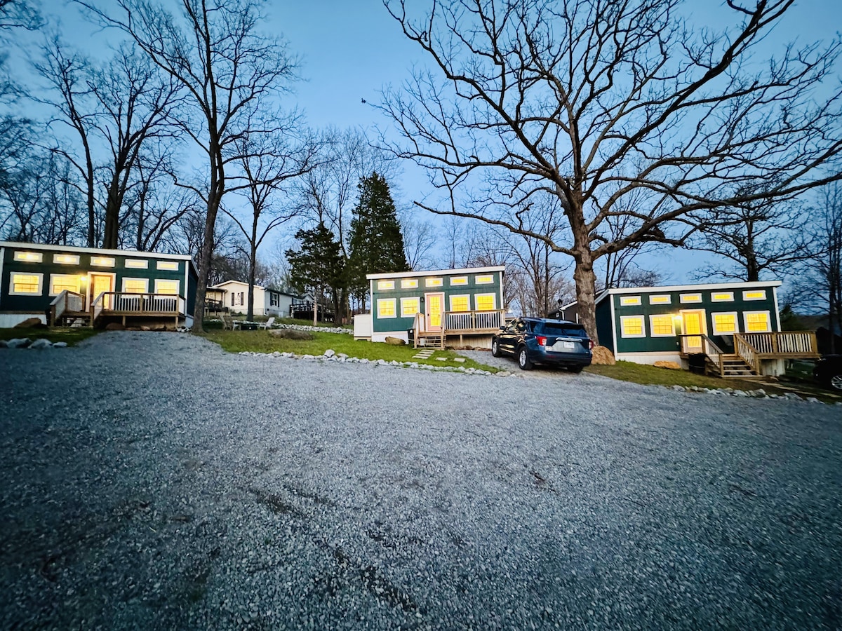 2 10' Kayaks to use on the Lake of Egypt. The cabin is is located on Lakeshore Dr S. The cabin has a bedroom with a queen size bed. The living room has a couch that can lay down and sleep two. The kitchen is stocked with the necessities and has a coffee/tea bar. Full size washer/dryer. The cabin is spacious and open Enjoy a bonfire with wood provided. Fern Cliff State Park is 5 minutes away, Wine trails and other activities within driving. High speed Fiber Optic internet.