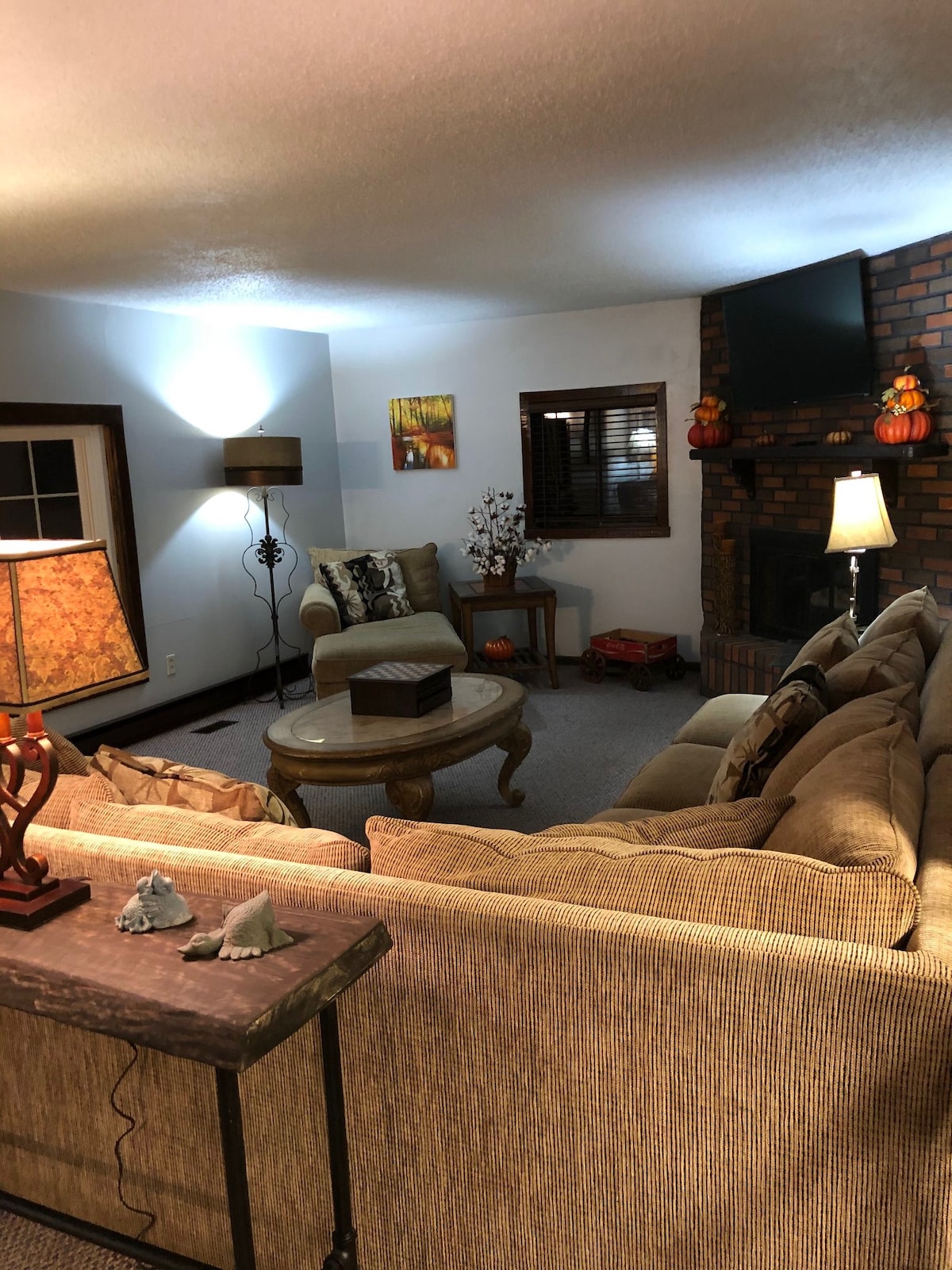 PET FRIENDLY-Frank Lloyd Wright design. This home is Unique and spacious! It is conveniently located near interstate 57, and 12 minutes from the Lake of Egypt. It is also close to Shawnee Hills National Forest for beautiful hiking trails and picnics as well as 12 local wineries! After your adventures, Relax in the rustic outdoor area that provides plenty of privacy. Or in the theatre room that has a large tv and recliners to watch your favorite movies or cheer on your favorite team!