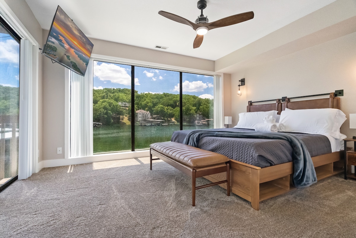 Enjoy a peaceful and stylish stay at this unique lakefront condo in Osage Beach! Located just minutes from shopping, entertainment, and recreation venues, this 2-bed, 1-bath vacation rental provides a serene escape from the concrete jungle. Spend your days boating, fishing, jet-skiing, and more on the Lake of the Ozarks, then return home to relax on the deck. Make your next vacation one to remember at this central location!