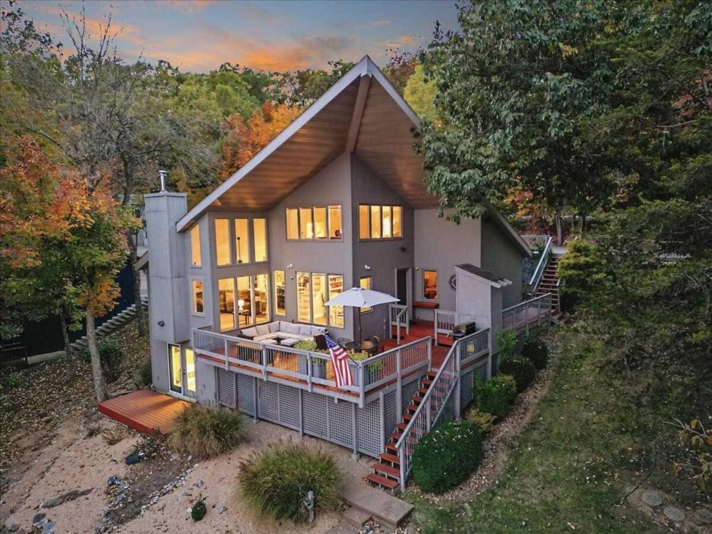 NEW Primium Hot Tub! Welcome to The View! Featuring stunning views of the lake from all rooms, floor-to-ceiling glass doors line entire lake side of home. Step onto spacious decks to relax, dine, or stargaze, all while soaking in breathtaking lake view! Enjoy access to a shared swim dock for sun-soaked afternoons. A short drive to outlet malls, golf courses, five star dining, and the iconic Bagnell Dam. Perfect for relaxing or exploring, The View offers an unforgettable lakefront experience!