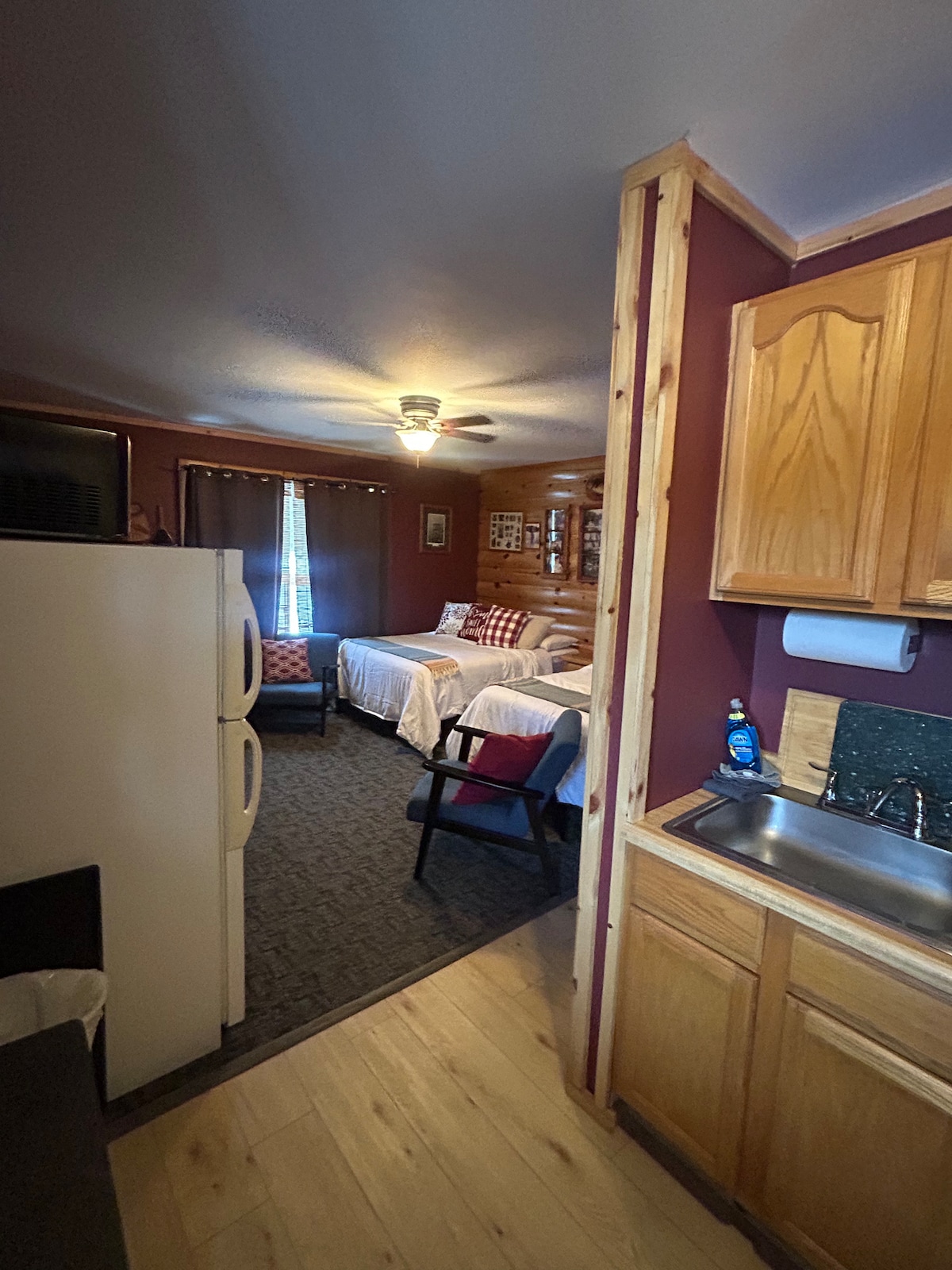 Welcome to your private riverside retreat on the Winnipeg River in Kenora, ON! This cozy 2-bedroom (queen/bunkbed/pull out couch) 1-bath retreat is perfect for families and outdoor lovers. Enjoy your private dock, ideal for fishing or swimming. The spacious yard is fenced and features a fire pit for evenings under the stars. The cabin includes a full kitchen, laundry, and a BBQ. Just a 12-minute drive from downtown, it's the perfect base for your Kenora adventure!