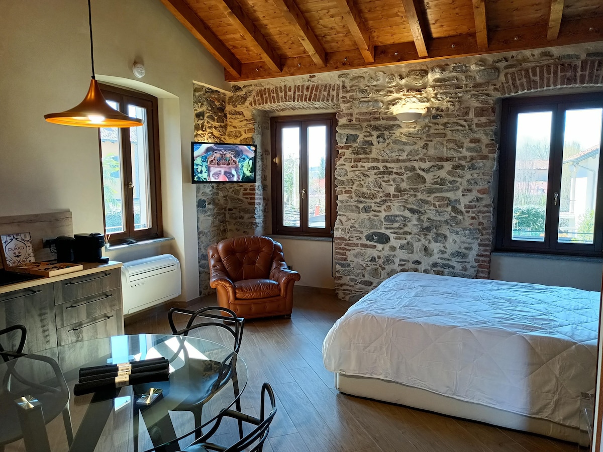 Appartamento con camera, bagno, living e cucina, con fantastica vista panoramica, immersa nella campagna ma a pochi minuti dal centro città. Ideale per amanti della natura, famiglie, sportivi. Da tenere in considerazione che, per raggiungere la cascina e godere della vista e della tranquillità della campagna, è necessario affrontare una strada sterrata e a tratti stretta. Nella struttura sono presenti altre due unità abitative per ospiti. CIR 012133-AGR-00006 CIN IT012133B546CQHW98
