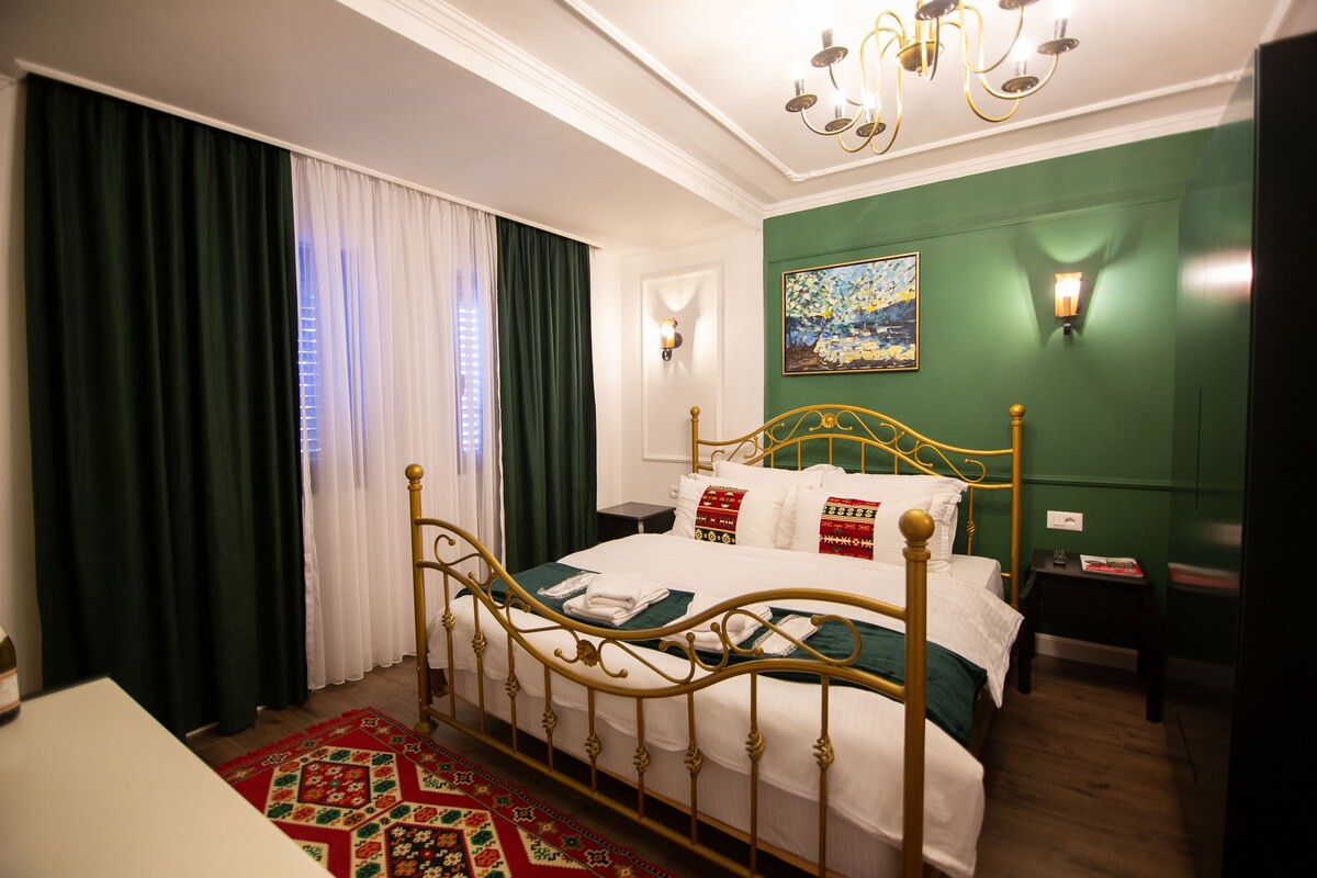 This boutique hotel is in the city center of Struga by the Drin River. It has a luxurious rooms with AC, Cable Tv, private bathroom and refrigerators. Eight rooms also have Riverview balcony that overlook the central pedestrian zone, the river bank, the lake and the park of poetry in Struga. The area has a considerable number of bars, restaurants and important touristic attractions.
