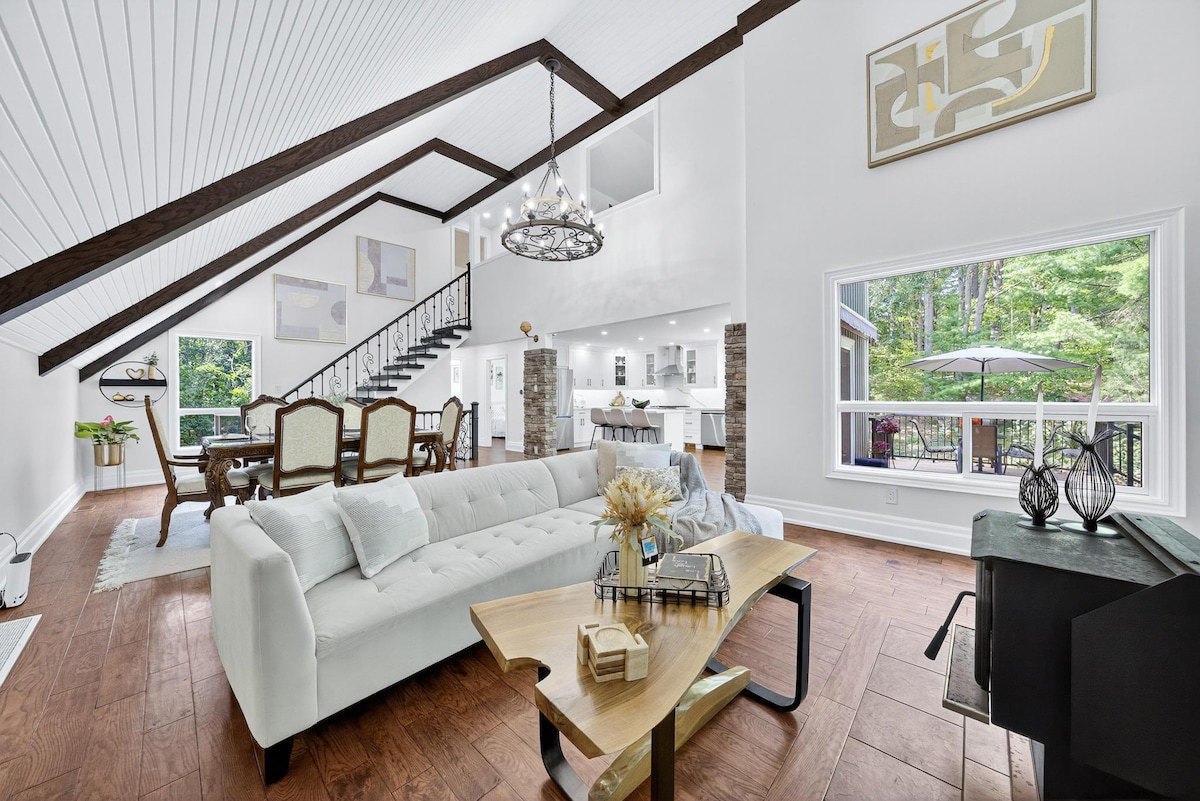 MAXIMUM 8 ADULTS, PLUS CHILDREN. NO EXCEPTIONS. Under The County’s STA bylaw, we are legally permitted to accommodate a maximum of 8 adults, plus children. Enjoy 3000+ sq ft of bright, open-concept cottage with high vaulted ceilings. The backyard is spacious too! 5 acres total. 4 Bedrooms (includes 3 king beds!) + 3 full baths. Whether it's a family vacation, couples getaway, girls weekend – we have tons of space.
