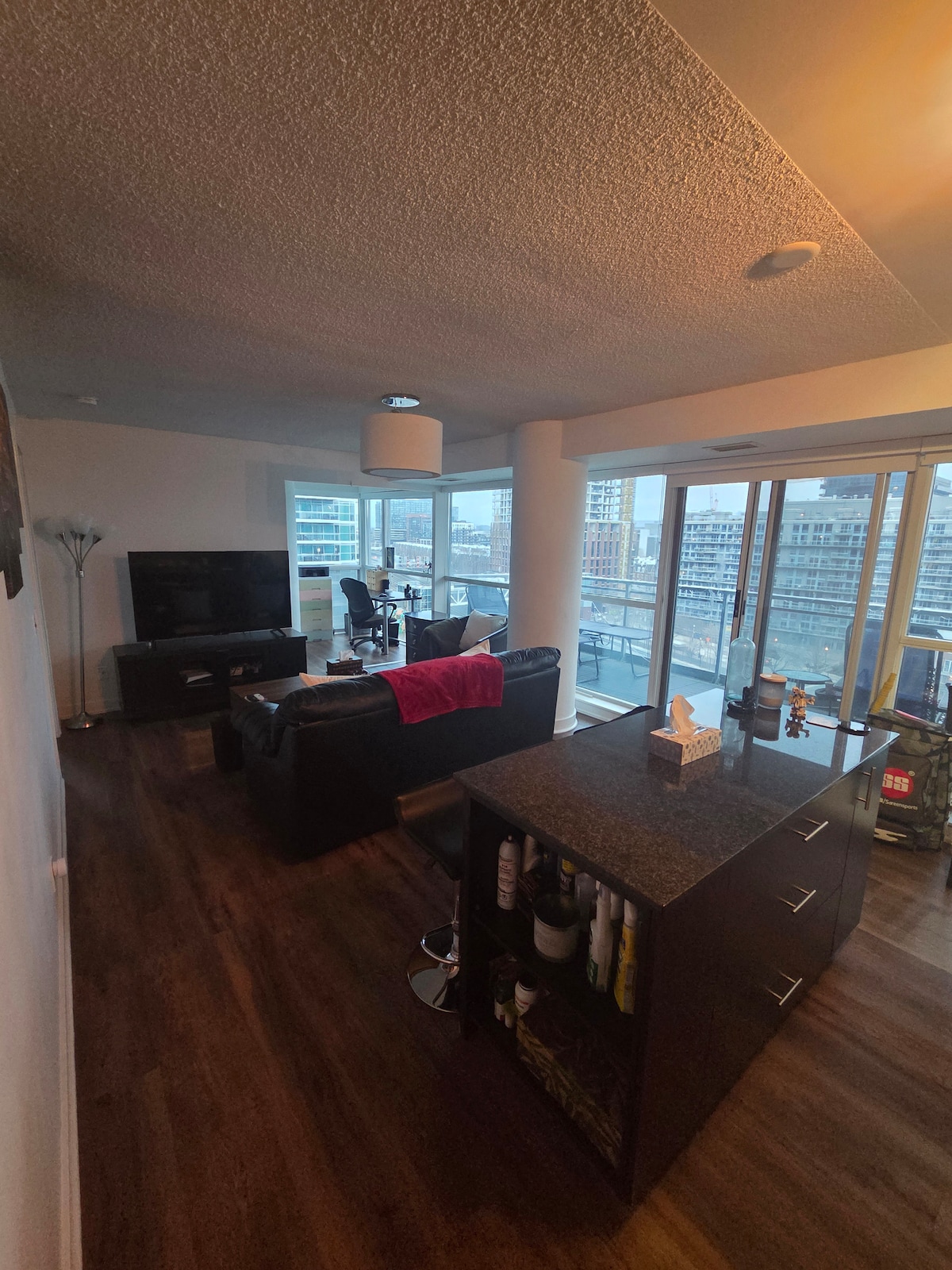 Gorgeous high-ceiling condo in downtown Toronto, located in the vibrant old fort york neighborhood. Spacious and bright unit with 2 bedrooms, 2 bathrooms, and 2 balconies. Equipped for remote work with 2 desks. A step away from the city best-known attractions: Lakefront, CN Tower, Rogers Center, Aquarium, shops, bars, restaurants and nightclubs Easy access to commodities (5 min walk from Starbucks, LCBO, Lowblaws, CityAirport and TTC) Underground parking spot is included.