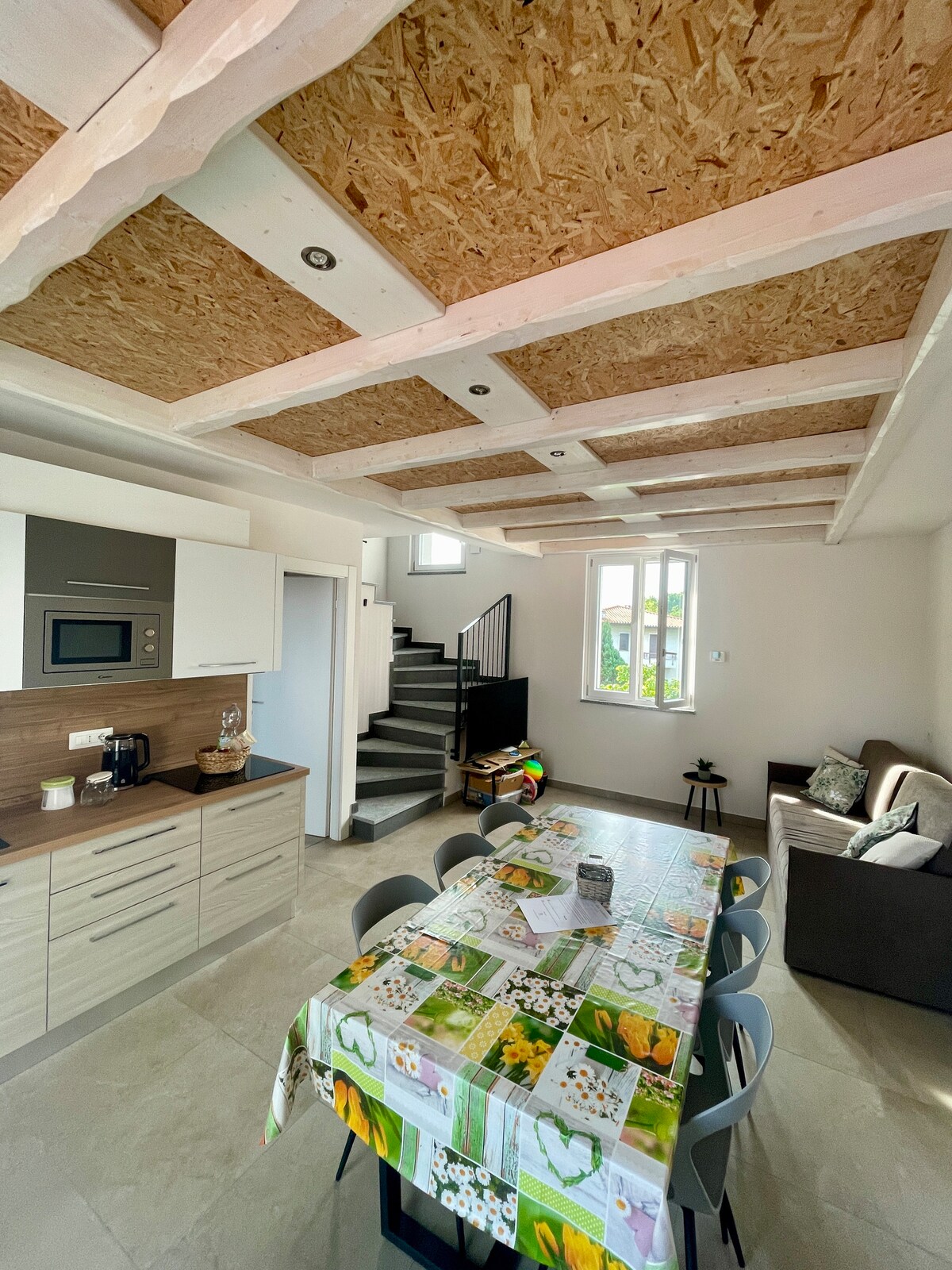 Attico moderno in zona pedonale nel centro storico a Porto Ceresio. Composto da open space con moderna cucina, tavola pranzo, divano, letto matrimoniale e bagno con doccia. La casa, del 1800, è di recentissima ristrutturazione ed è dotata di ogni comfort: lavatrice, asciugatrice, lavastoviglie, macchina caffè, ferro e asse stiro, asciugacapelli, wi-fi, tv schermo piatto con canali digitale terrestre e Netfix.