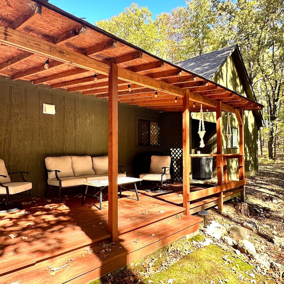 Come enjoy nature in our beautiful cabin. Woods Creek Cabin is in a quiet, wooded setting just north of Mt. Ida. We have a compact kitchenette with microwave, toaster, Keurig and small refridgerator. Our rustic log queen size bed is perfect for getting a restful night's sleep before exploring the Ouachita Mountains just outside your door. You will enjoy playing a fun game of horseshoes, Baggo, grilling or just sitting around the firepit while listening to the creek and birds.