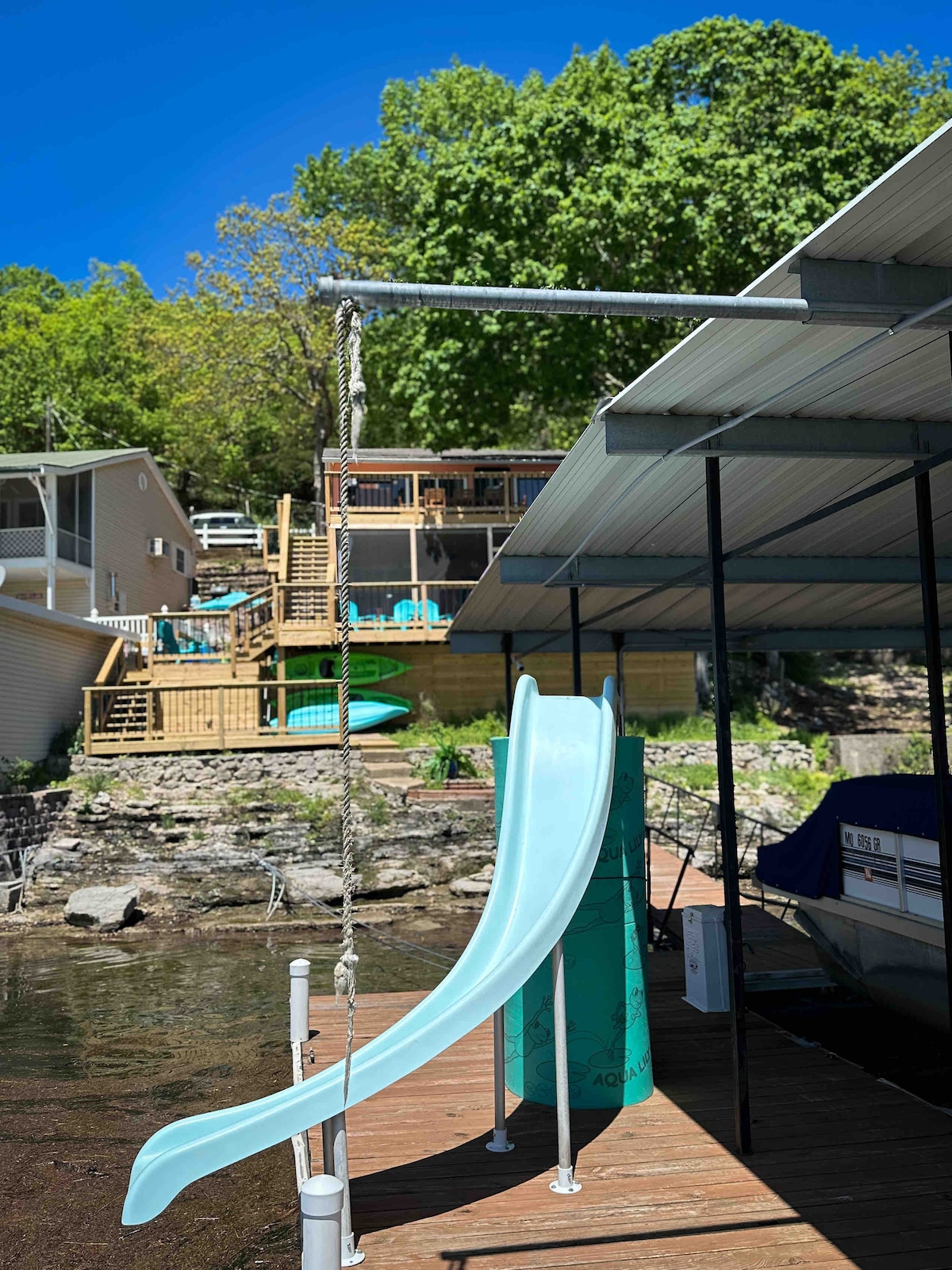 Entire lake house ready for your next lake retreat with family or friends. Spacious living area including outdoor deck space with a private dock and kayaks for use! Watch the sunset on the dock while grilling out or next to the gas fire pit. Cozy up next to the wood burning fireplace. **NEW LOWE Tritoon BOAT RENTAL option or space to side dock your boat. Close to the strip, grocery stores, and restaurants. Mini golf, go-karts, and a winery are also nearby. Perfect for a weekend or long get away.