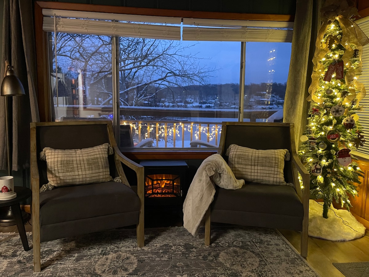 Nestled among the trees, On the Rocks is a luxury treehouse that promises an unforgettable escape to nature without sacrificing comfort or style. It offers a contemporary design feel with a private decks, hot tub, firepit, kitchen, and serene atmosphere, allowing guests to unwind and connect with nature in the utmost luxury. The Treehouses at Whiskey Woods offers two luxury treehouses to choose from for a getaway for two or grab friends to stay just next door. Our firepits offer seating for 4.