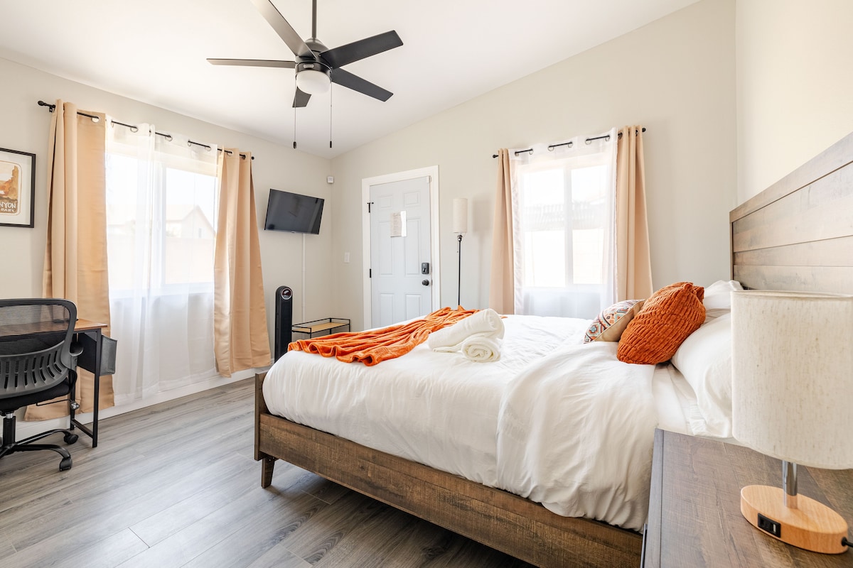 Villa Saguaro is a private, modern one-bedroom guesthouse ideal for traveling professionals, contractors, and work crews. Unwind after work in a comfortable king bed and enjoy a quiet space designed for rest and productivity. Includes fast Wi-Fi, a dedicated workspace, and a kitchenette for easy meals. Private entrance. Attached to the main house but fully separate, offering a peaceful and secure stay for short or extended work trips.
