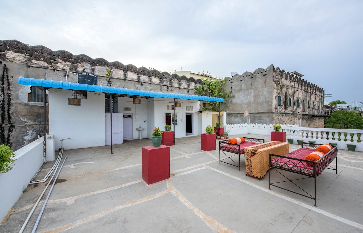 There is 1 bookable suite room with attached bathroom,balcony, small sitting area,TV, Air conditioner,a double bed, a Single Jharokha bed & a Single Sofa bed. It can accommodate 4 guests. Two Kids upto 5 years old stay free when using existing beds booked by Guest. Kids between 6 to 12 years old are charged INR 600 per night. All further older kids/adults are charged INR 850/night. These additional charges for extra guests need to be paid on check-out if not included during the booking.