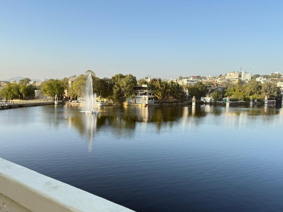 Relax with the whole family at this peaceful place to stay. This listing has set of nine rooms and two floors. First floor is having five rooms out of which two rooms are Lakeview rooms on second floor their is set of four rooms with the private terrace and a specular view of huge green lawns and fateh sagar lake