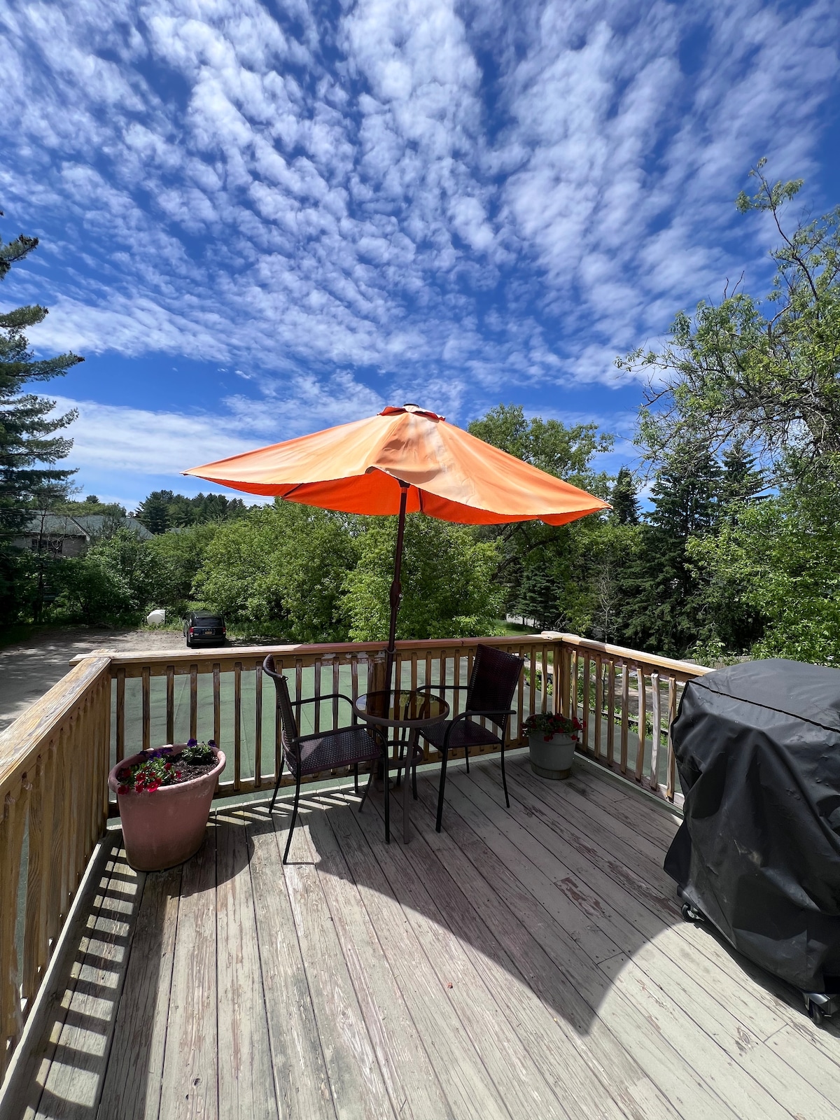 This quirky, little space will add a splash of of color and charm to your stay in beautiful Lake Placid. It has a bit of a retro feel and features a king bed, full size fridge, dishwasher, and an outdoor, rooftop patio/deck with a grill and seating. It is within walking distance of several wonderful restaurants and about a half mile walk to the heart of Mainstreet, Lake Placid and Mirror Lake.