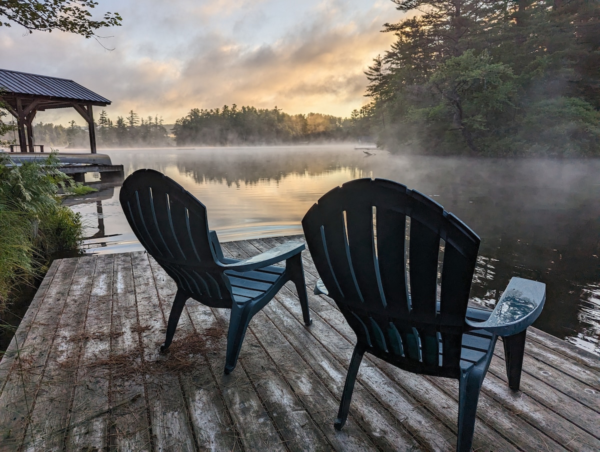 田园诗般的滨水阿迪朗达克露营地,带壁炉