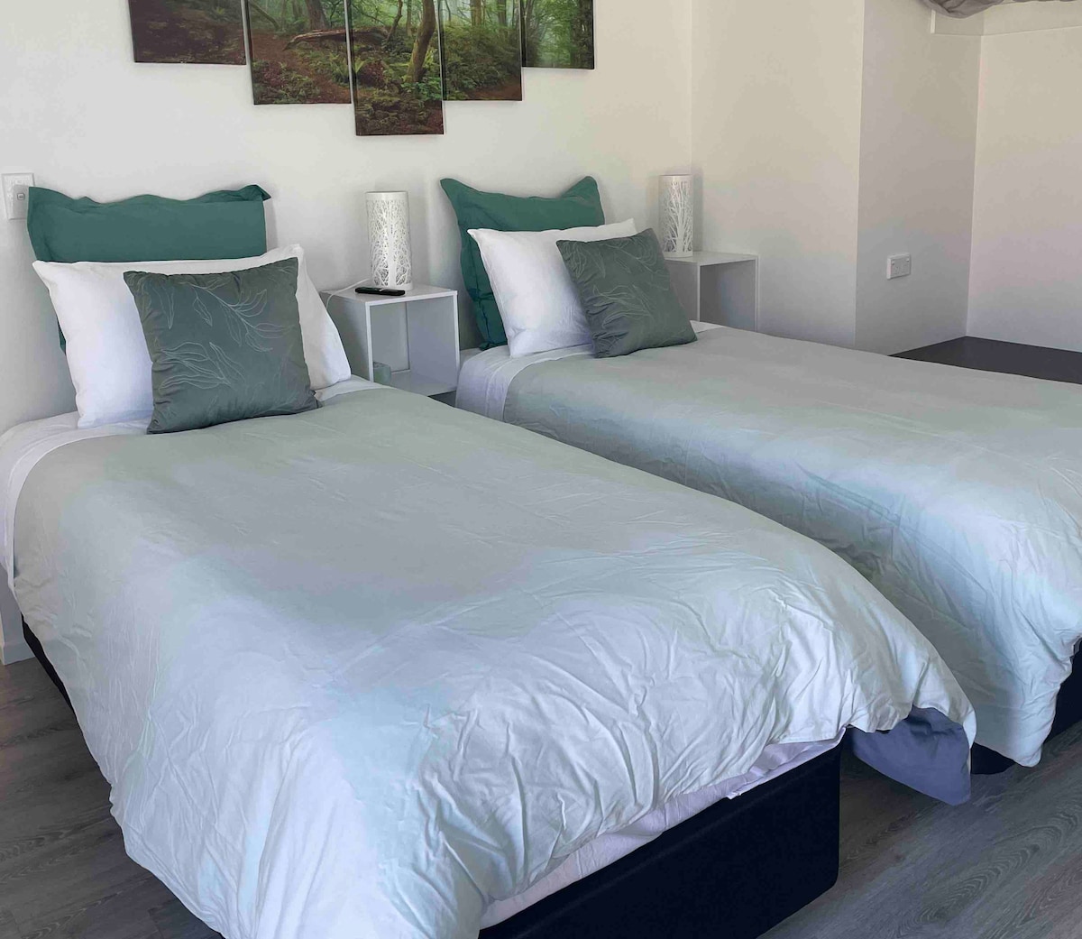 Fresh and modern in Lynmore. Secure bike storage and E-bike charging. Quiet residential area. Off street parking and secure exclusive bike shed. Bike to The Redwoods, walk to cafes and the Good Eastern pub. One of very few homes with twin single beds so best suited to two friends or a parent and child. Self contained but it is attached to the main family home.