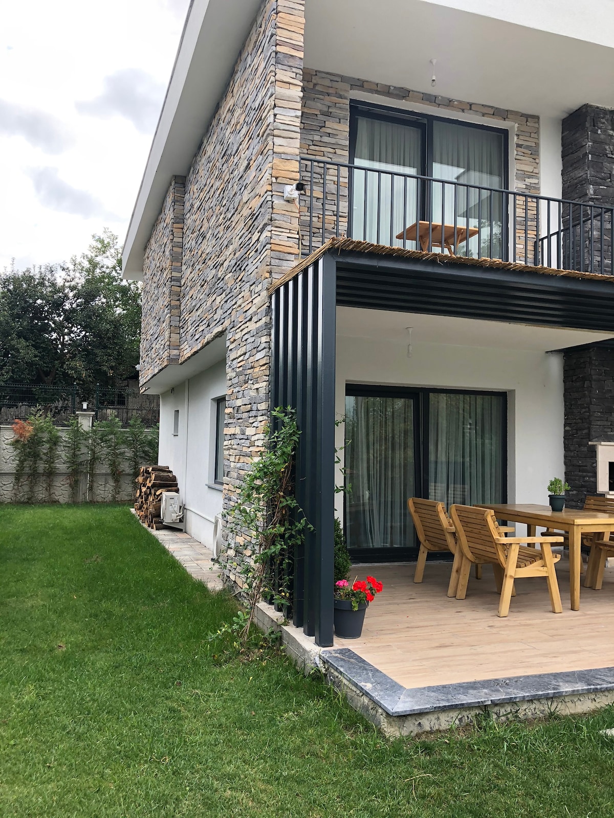340 m2 yemyeşil bir bahçe içerisinde yer alan bu villa doğanın ve konforun bir arada bulunduğu nadir yerlerden biridir. Aynı zamanda merkezi bir konuma sahip olup alışveriş merkezlerine yürüme mesafesindedir. Isıtmalı Havuz - Ev içi yerden ısıtma - Şömine