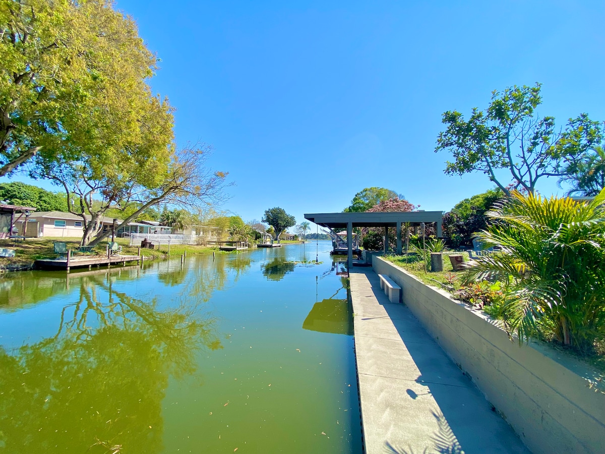 Located on the canal with Seminole Lake breezes visiting the wonderful memorable wildlife in your back yard. 15 minutes to Indian Rocks Beach and 20 minutes to Madeira Beach. Open kitchen to the dining area and living room. Bedroom one has king size bed and bedroom two has full size bed. Less than five minutes to Largo Mall and shopping. Grill on the back deck with water view. Total home of 585 Square feet with spacious outdoor space. Accommodates up to 4 people.