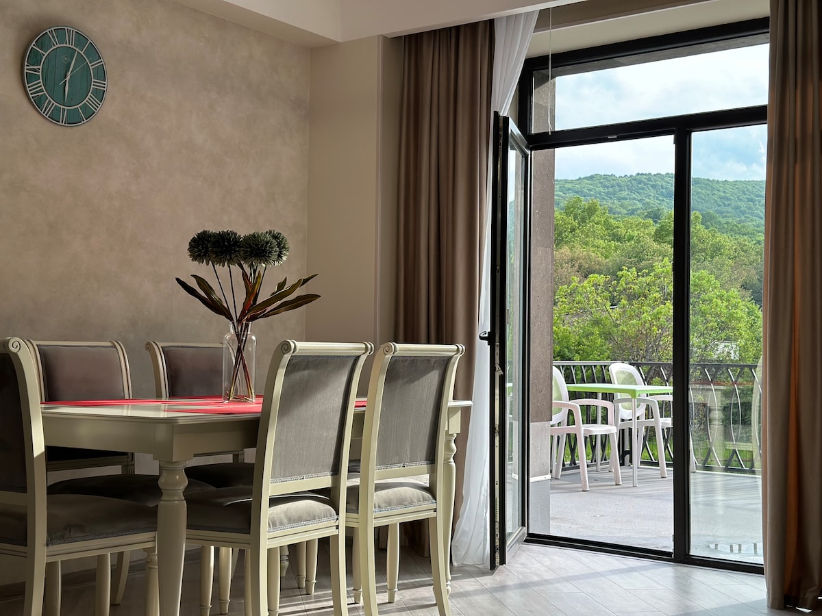 Welcome to our cozy spot right in the heart of the city, where you can soak in the beauty of Dilijan woods from your window. Super close to all the city action, especially Carahunge restaurant (just a 3-minute walk) and Verev Park (a breezy 5-minute stroll). Inside, we've got everything to make your stay in Dilijan as comfy as can be. A chill living room, a handy kitchen, a snug bedroom, and yup, you guessed it—two bathrooms. Your home away from home awaits!