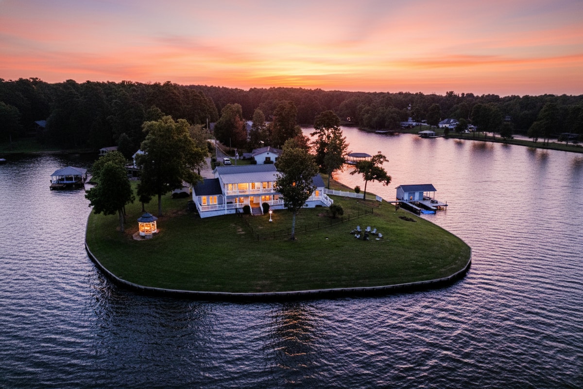 Enjoy 270° views from our private peninsula on Lake Sinclair, where the water is clear with a soft sandy bottom. Three master suites with en‑suite baths plus a fourth bedroom/bath. Open floor plan with sunset views through double doors. Dock your boat, grill on the porch, relax in the screened patio, bonfire, kayak, paddleboard, or float. Nearly 600 ft of private shoreline. Sleeps 12 (14 with cot/air mattress).