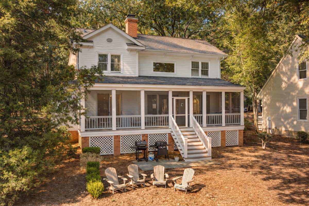 >>View our IG videos for more @anchorsaway_lakesinclair<< Renovated, spacious home w/ abundant outdoor space on deep waters of Lake Sinclair. 3 br, 2 ba + Queen pull out sofa comfortably sleeps 8. Enjoy the lake with our kayaks, paddle board, swim mat, fishing gear. Drop your boat in nearby Twin Bridges Marina & tie up at our dock. After water fun, soak in the hot tub, cook out on the grill, roast treats on the fire pit, play cornhole.
