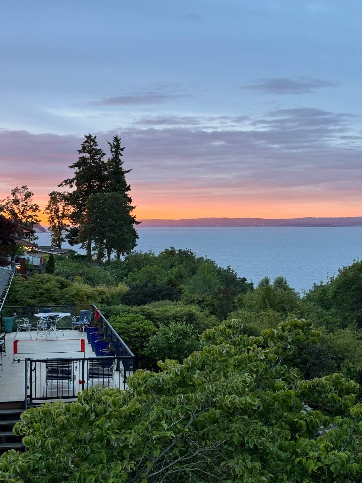 Enjoy breathtaking views of the Sound and Olympic Mountains while relaxing on one of the three decks of our newly remodeled waterfront home. Our modern beach house features three spacious upstairs bedrooms around a separate sitting area, a large living and dining space downstairs, and bathrooms on both levels. You can spot seals, bald eagles, and whales while walking along the no bank beach steps from our front door. Sip wine around the propane fire pit while enjoying the magnificent sunset.