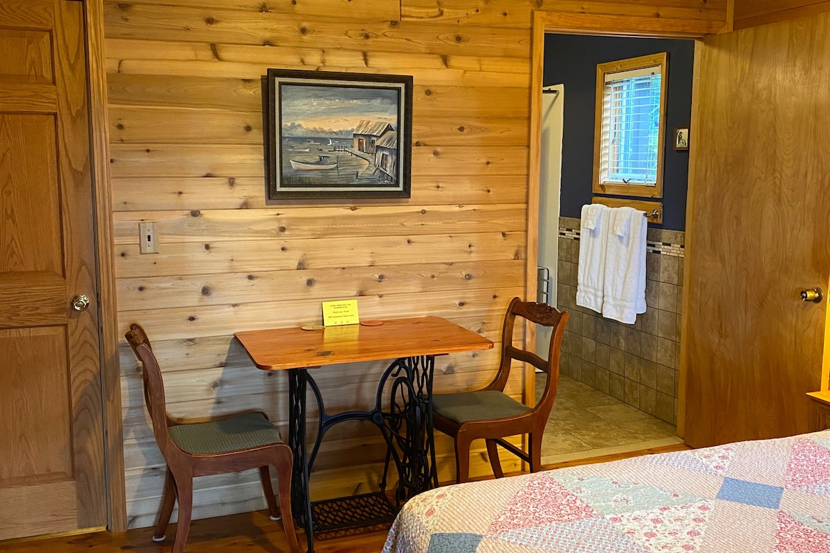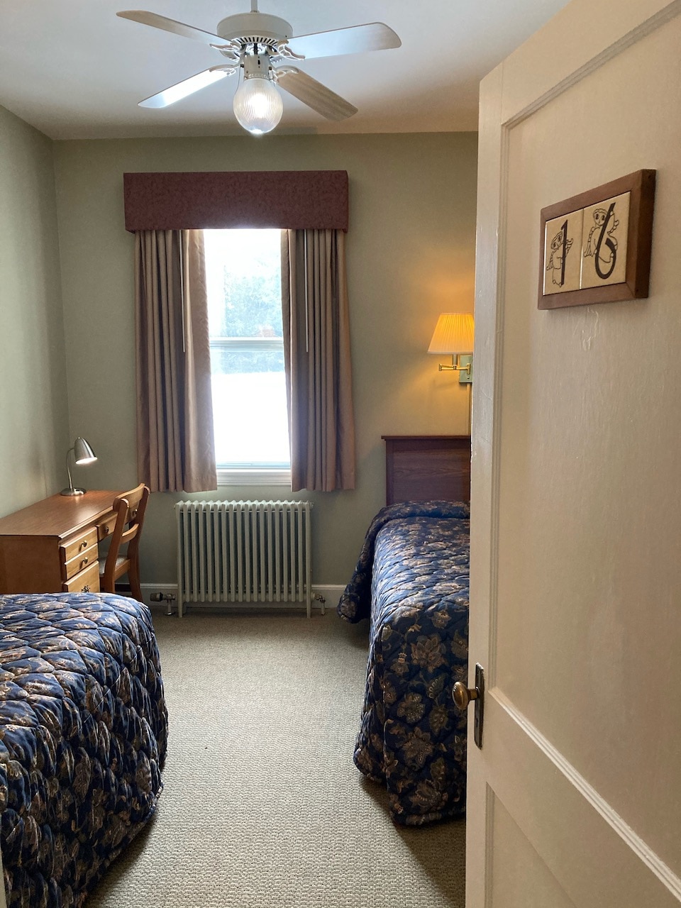 This unit is comprised of two separate guest rooms adjacent but NOT adjoining. Room 220 is a bedroom with a queen bed, TV with streaming, A/C, mini-fridge, coffee maker, and a connected private bathroom. Room 221, right next door, has a double bed, TV with streaming, and A/C. A group of 2 - 4 travelers works perfectly in this setup, sharing the private bathroom in Room 220. Or, Room 221 can use the shared bathroom facilities down the hall. Free breakfast snacks included. Not suitable for kids.