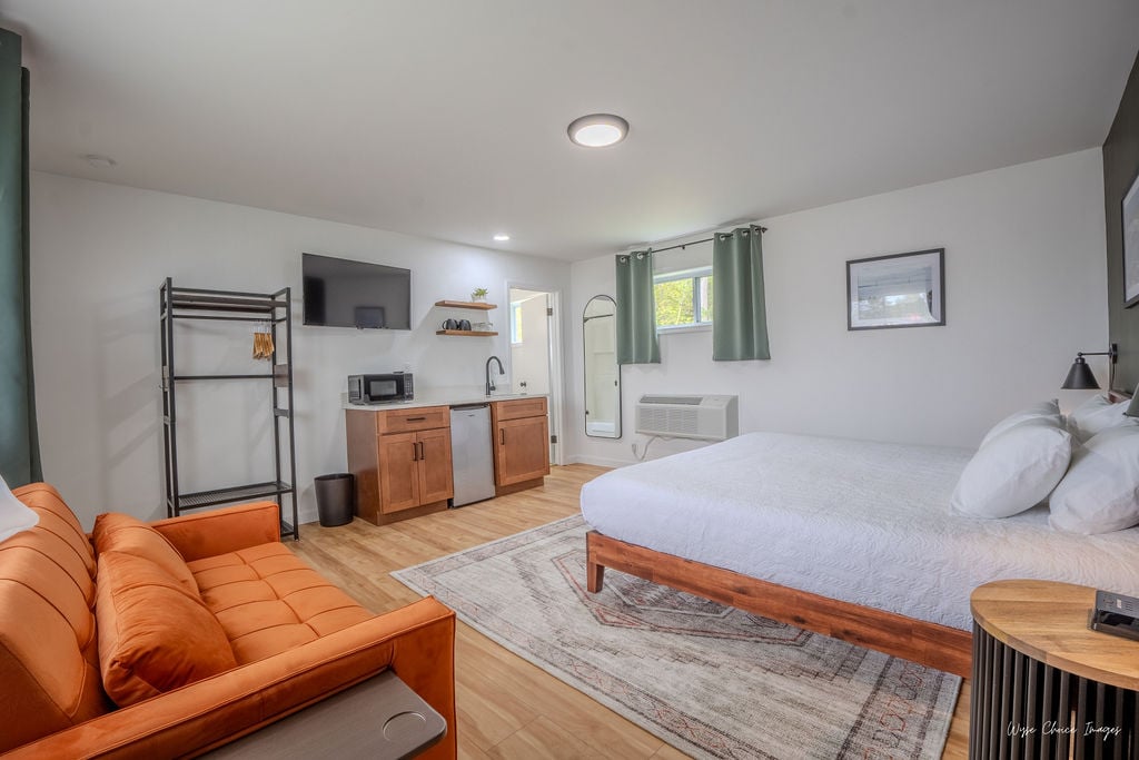 Full historic rehabilitation of an iconic boutique hotel. Our rooms are designed to immerse you in Bayfield's vibrant community. Wake up to beautiful natural light take in the breeze off the Lake, just a few blocks away, and enjoy the Lakeview Sauna and rooftop lounge. Our stylish rooms come with soaring ceilings, and are equipped with fast Wi-Fi, a SmartTV, Record Player, and beverage cooler. Rooms also come with a complimentary coffee bar, featuring an exclusive Social Blend by Antler Coffee.