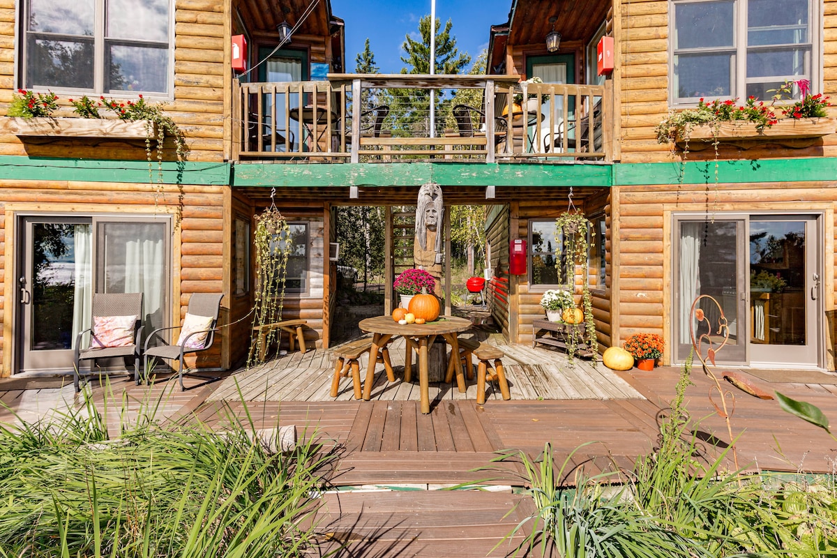 The Great Lakes Suite – A Maritime Escape on Lake Superior Elevate your North Shore getaway in our lovingly appointed Great Lakes Suite, a cozy retreat perched on the second floor with sweeping views of Lake Superior’s dramatic expanse. Picture yourself nestled in a queen-sized captain’s bed, wrapped in a hand-stitched quilt, as the panorama unfolds—cargo ships gliding on the horizon, storm clouds rolling in over the water, and sunrises that illuminate the surface in golden hues.