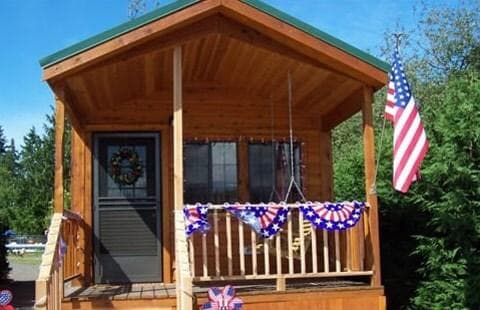 Deluxe King Cabin - Adjacent to Olympic National Forest and central to the National Park. Ocean Straits 5 minute drive with Port Angeles and Victoria Ferry just 10 minutes away. Outdoor deck and BBQ facing the woods, Indoor fireplace, Kitchen, as well as more amenities and a small store with souvenirs at our campground above; i.e. Ebike rentals for the discovery trail, volley ball, horseshoes, basketball activities are available to you.