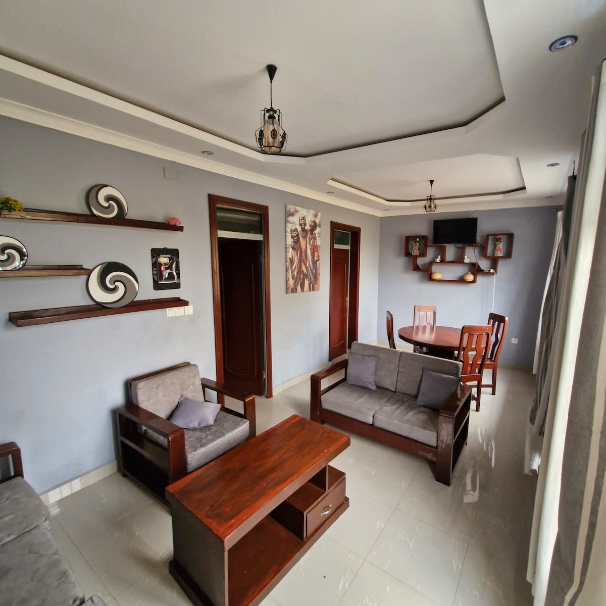 Bienvenue dans notre bel appartement situé à Kinanira 2, à courte distance de marche de l'hôpital Kira et de l'École Internationale de Bujumbura. Certaines caractéristiques de la maison et des chambres : - Deux chambres spacieuses - Smart TV avec applications de streaming populaires comme YouTube et Netflix - Grand espace de stationnement - Situé à 5 minutes du centre ville de Bujumbura - Accès facile à la route qui mène à l'aéroport