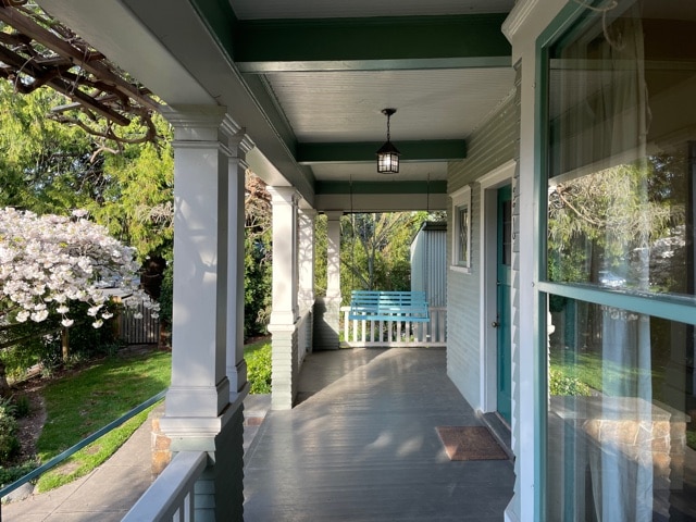 Gaze out across the canopy of the nature preserve & organic gardens behind this lovingly restored, 2000sf bungalow. Discover a serene escape featuring a blend of contemporary, antique and mid-century furnishings, art, books, a lush, secluded front garden, and an expansive back deck. With two workstations featuring large, curved monitors, a printer and 300+mb Wi-Fi—along with nearby nature trails and a beach—the house is ideal for long-term, work from home stays.
