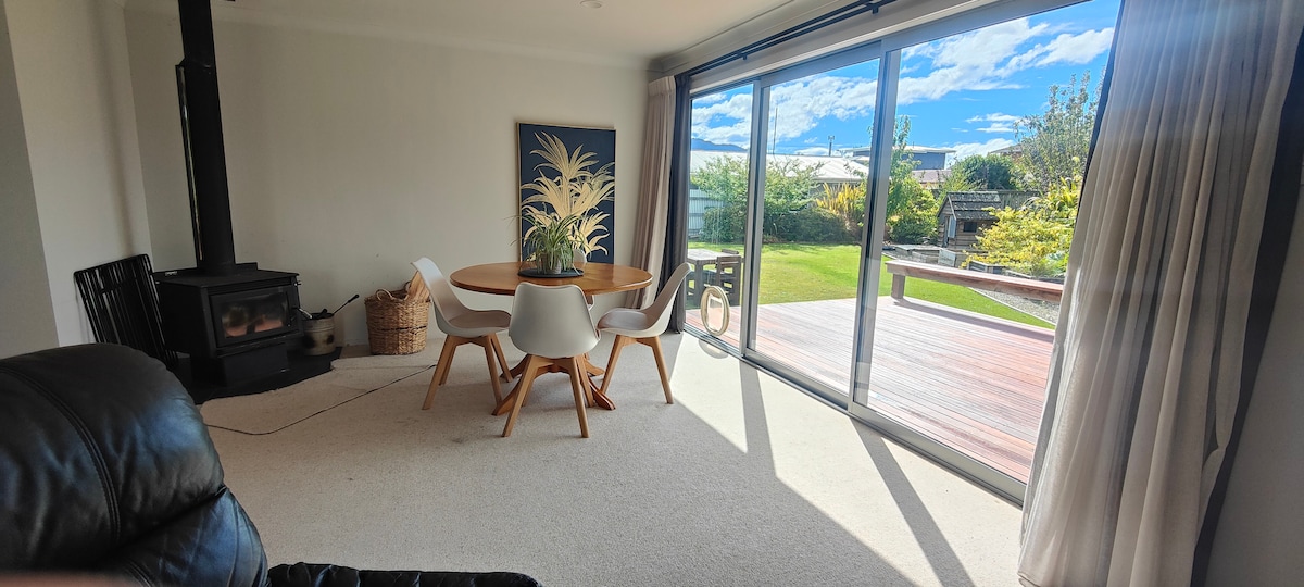 In a quiet street near town, Blue Mountain Getaway boasts fresh, new furnishings. It has 2 luxurious Queen size beds, 2 King singles and a Sofa bed option. There is a Main Bedroom ensuite. Recently built it has a modern, comfortable interior, well equipped kitchen and also unlimited wifi . The sunny, north facing deck with outdoor furniture, has stunning mountain views enticing outdoor relaxation. It's 2 minutes drive to the township cafes and restaurants. This is Lakeside living at it's best.