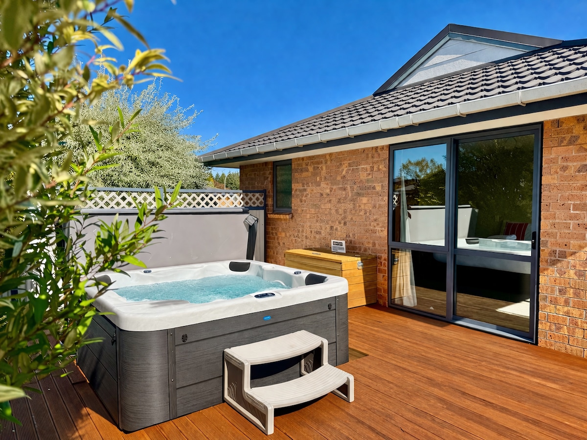 THE FOUR BEDROOM HOME WITH SPA POOL FOR FAMILY AND FRIENDS TO RELAX -New carpets, flooring and beds -Warm and Sunny House that sleeps 10 - Heated Spa Pool is great for a relaxing holiday -10 Mins Walk to town centre or Lakefront -Safe quiet friendly neighborhood - Full kitchen, Wifi, Washer & Dryer - Cooking utensils, linens, and toiletries are provided - Plenty of parking spaces - Ideal for large groups, featuring a master bedroom with a full bathroom, a separate toilet, and a separate shower
