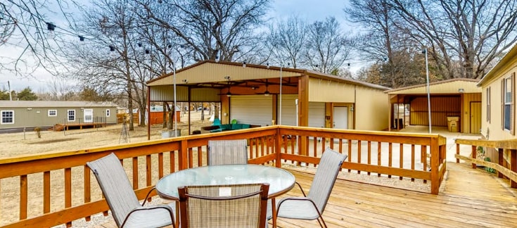 Set on 17 peaceful acres with panoramic views into Oklahoma, this luxury tiny home offers the perfect getaway. Sip wine at a local vineyard, explore downtown Denison’s shops and eateries, or relax under the starry Texas sky by the fire. End your day curled up in your cozy space, streaming your favorite shows.